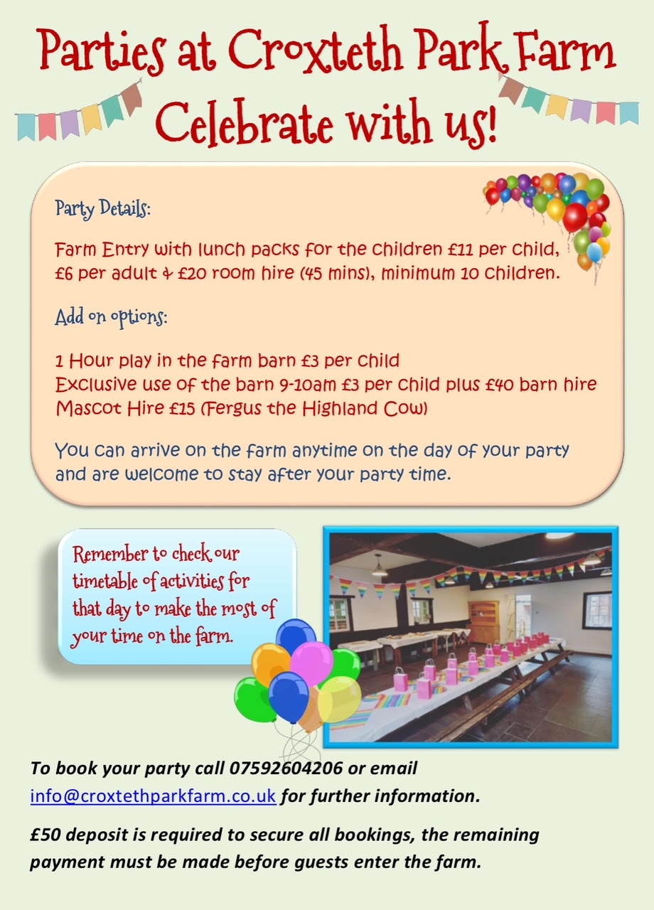 All party bookings are subject to a £50.00 non-refundable deposit.